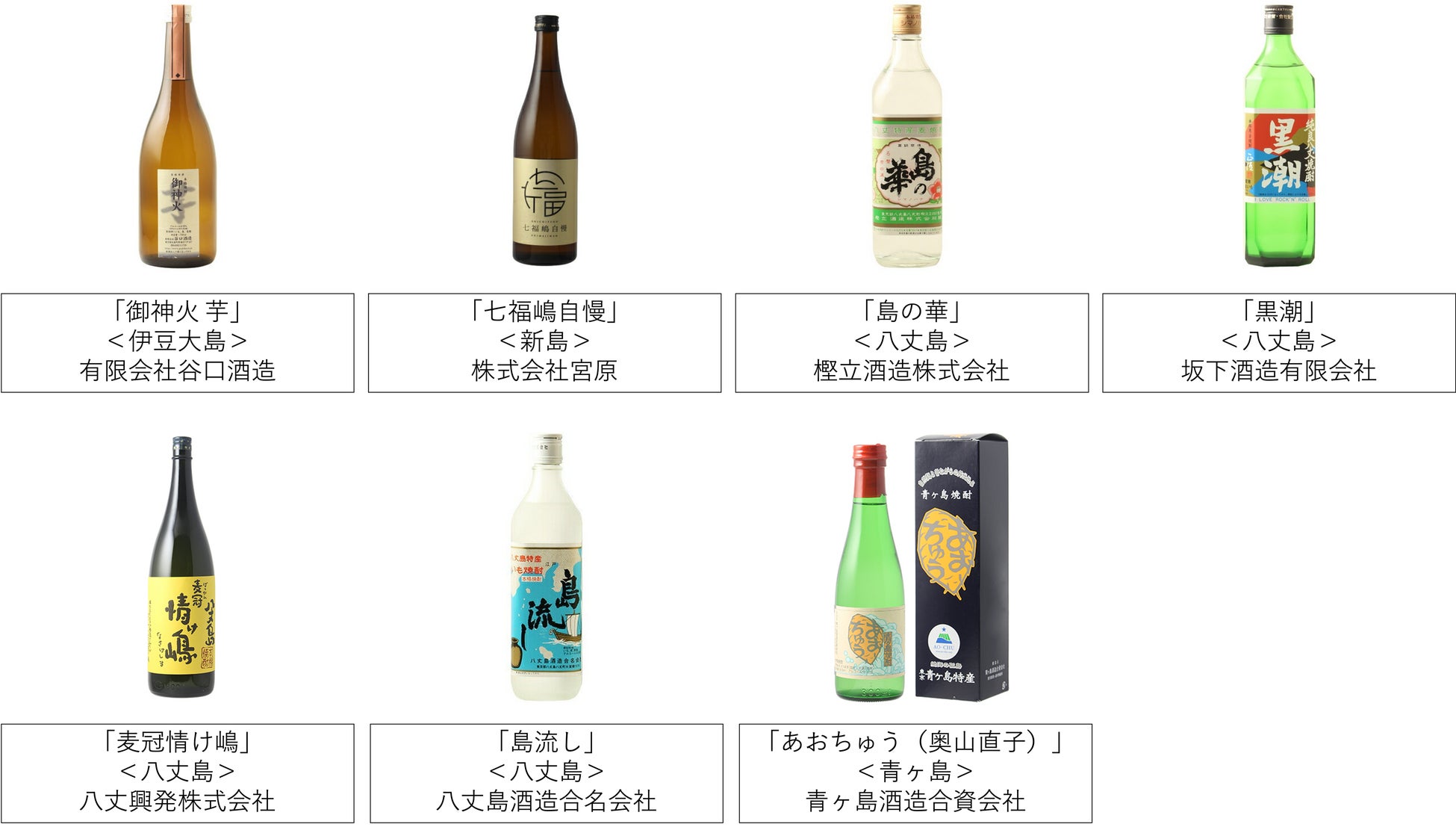 有限会社谷口酒造、株式会社宮原、樫立酒造株式会社、坂下酒造有限会社、八丈興発株式会社、八丈島酒造合名会社、青ヶ島酒造合資会社