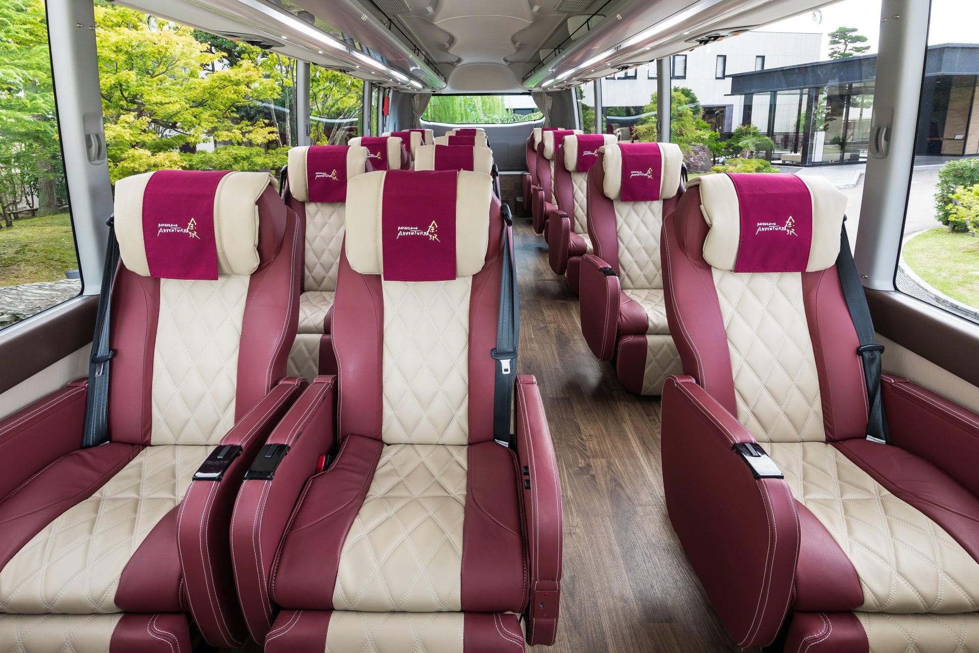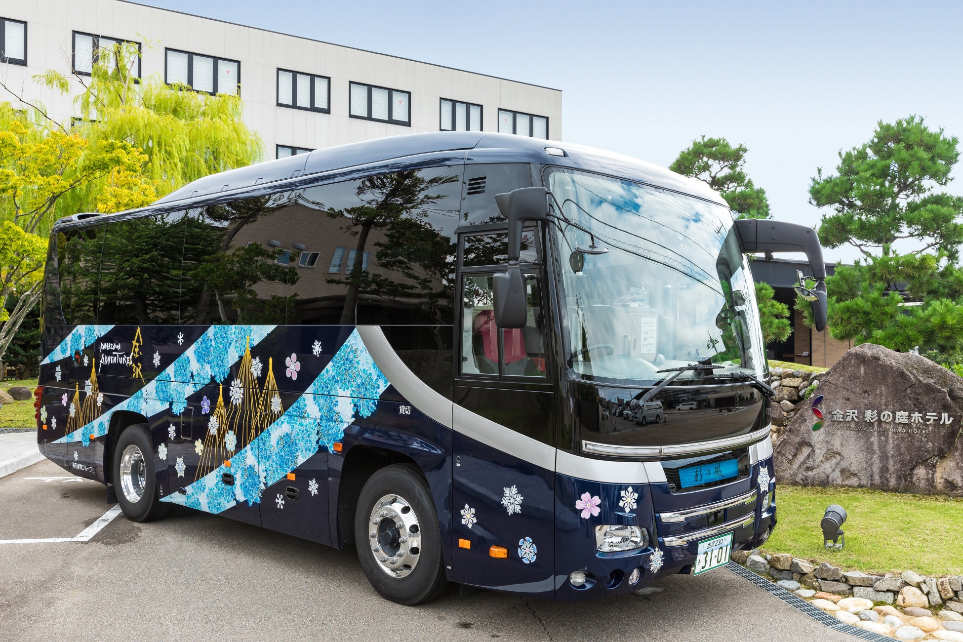 ツアーの重要な足となるバスも完全自社運行を行っており、加賀友禅モチーフの柄をあしらった特別仕様のラグジュアリーバスで金沢の風を感じながら寛ぎの空間をお楽しみいただけます。