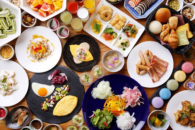 加賀野菜など地元の食材をふんだんに用いたお料理をブッフェ形式で提供。四季折々の旬の味覚や山海の幸、和洋のお料理を揃えた当ホテルならではの朝餉をお愉しみいただけます。