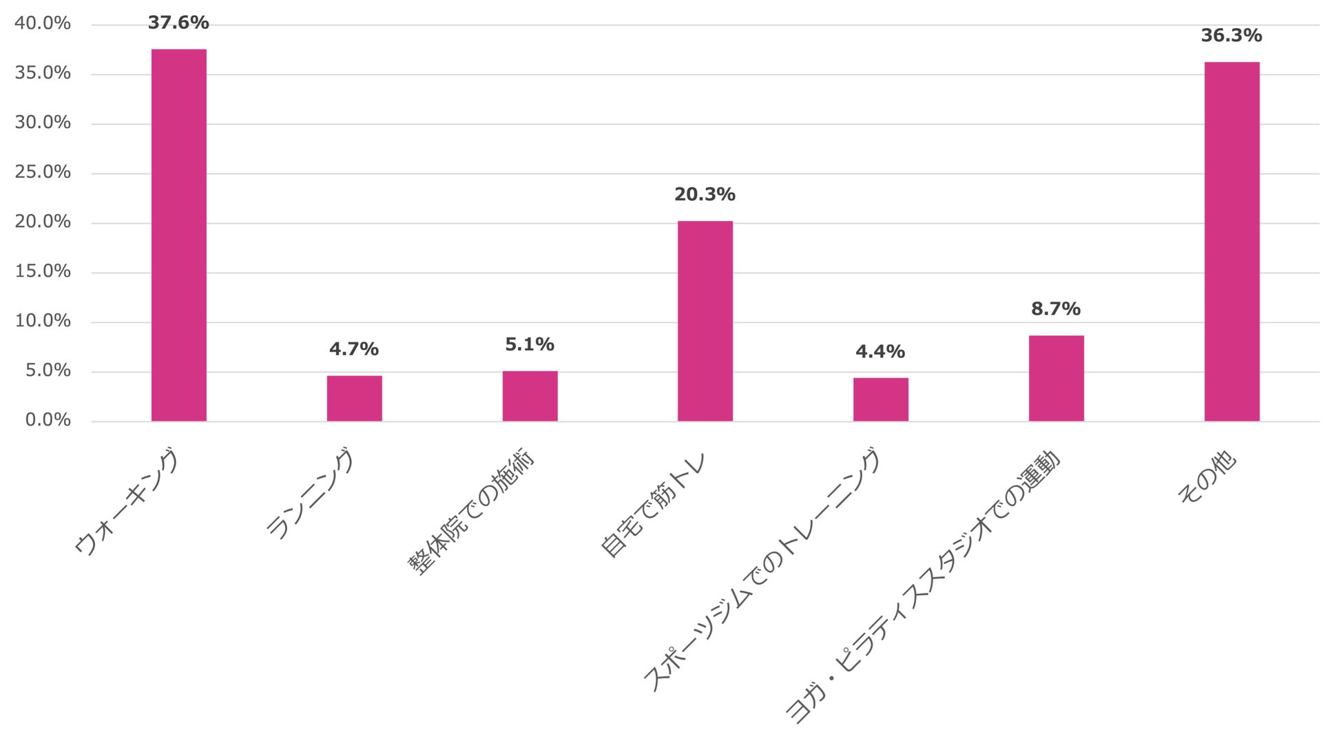 一方、同じく費用がかからないランニングは、ウォーキングと比べると負荷も高いためか、4.7%と低い結果となっています。