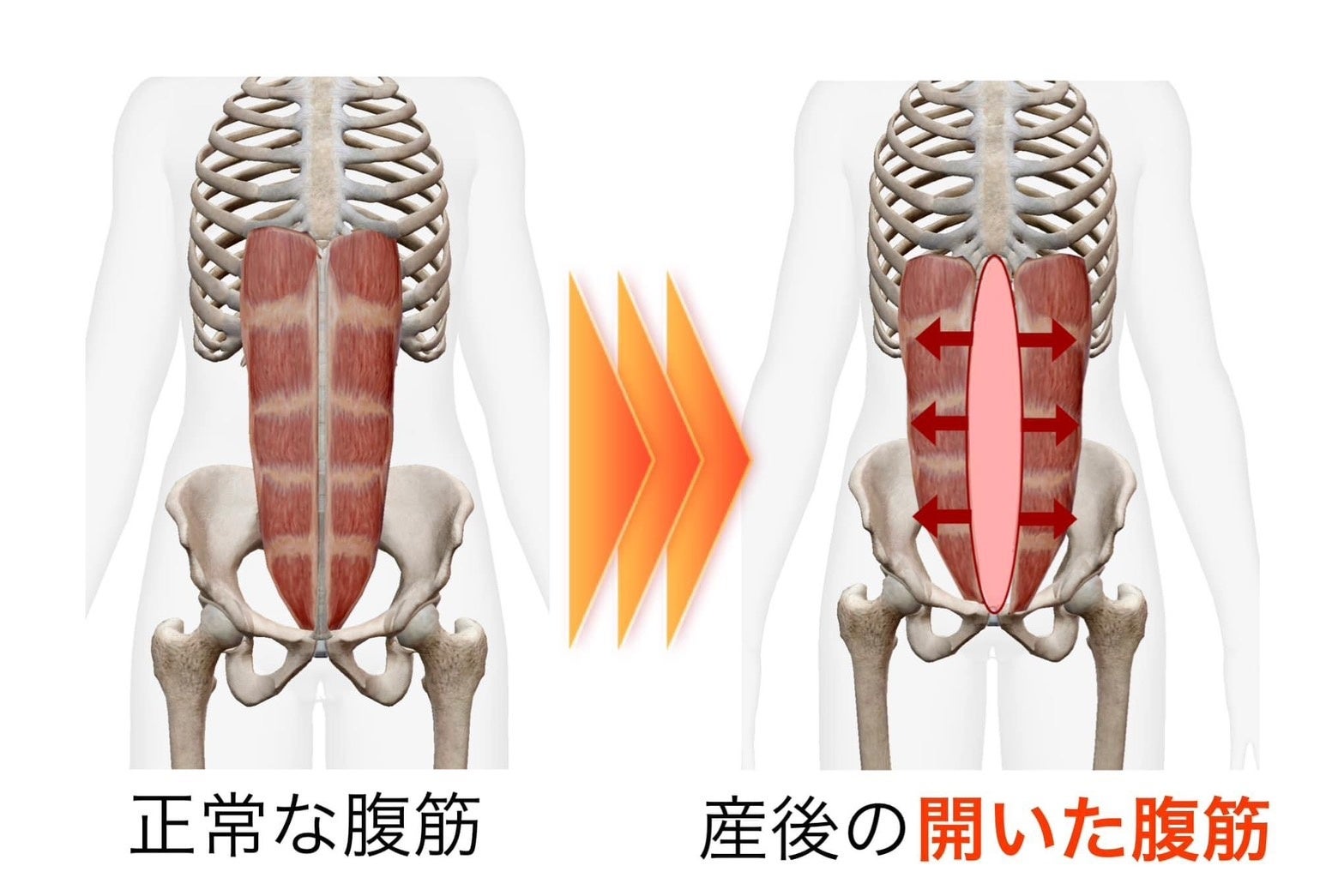 なぜいわゆる腹筋(シットアップ、クランチ)が産後すぐの女性に良くないかと言うと、産後の女性特有の体の変化が大きく分けて2つ起こってしまっているからです。