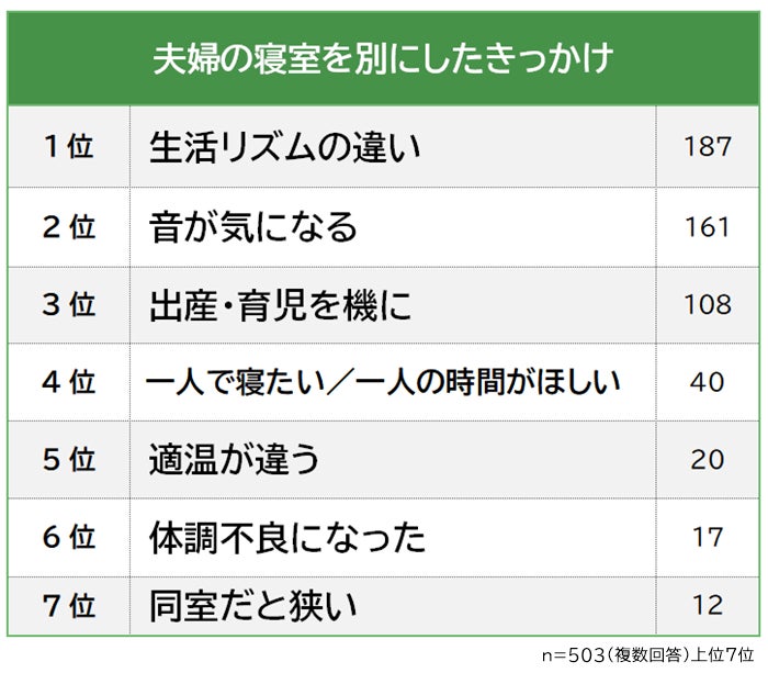 【夫婦の寝室を別にしたきっかけランキング】男女503人アンケート調査