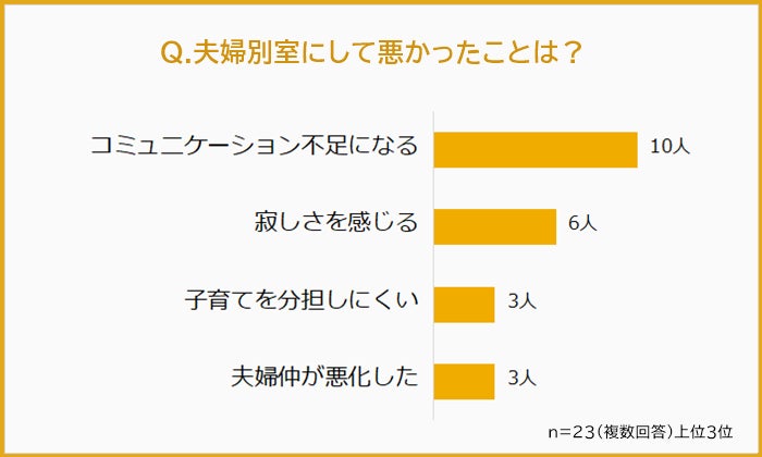 続いて「夫婦別室にしてよくなかった」と答えた23人に「夫婦別室にしてよくなかった理由」を聞きました。
