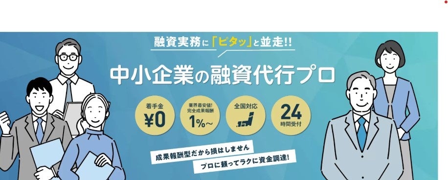 中小企業の融資代行プロ、サービス拡充を開始。着手金無料!中小・ベンチャー経営者に寄り添い、スムーズな資金調達をコンサルティング!