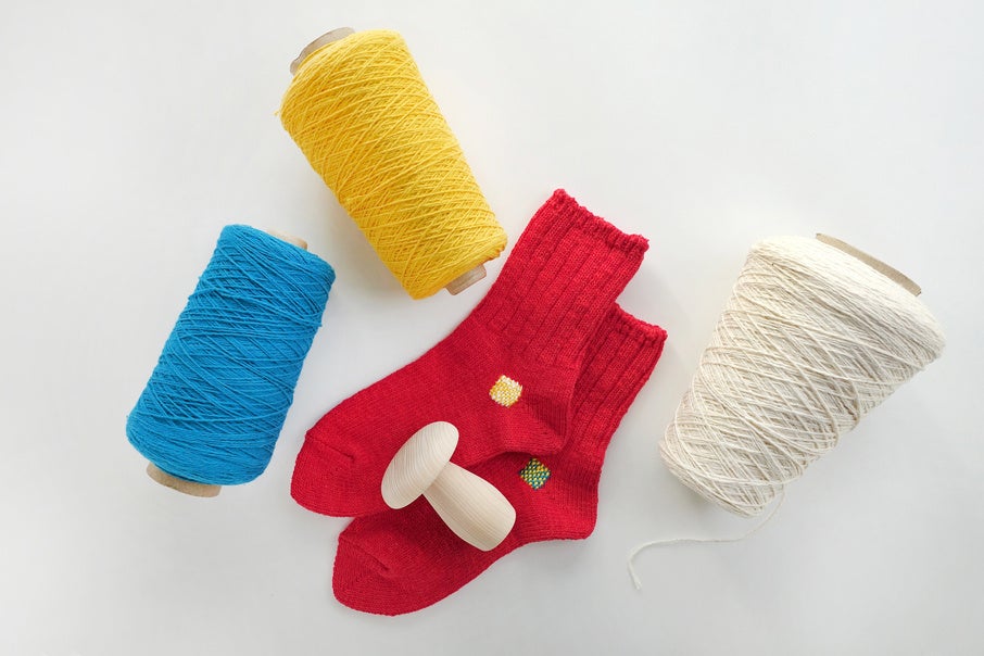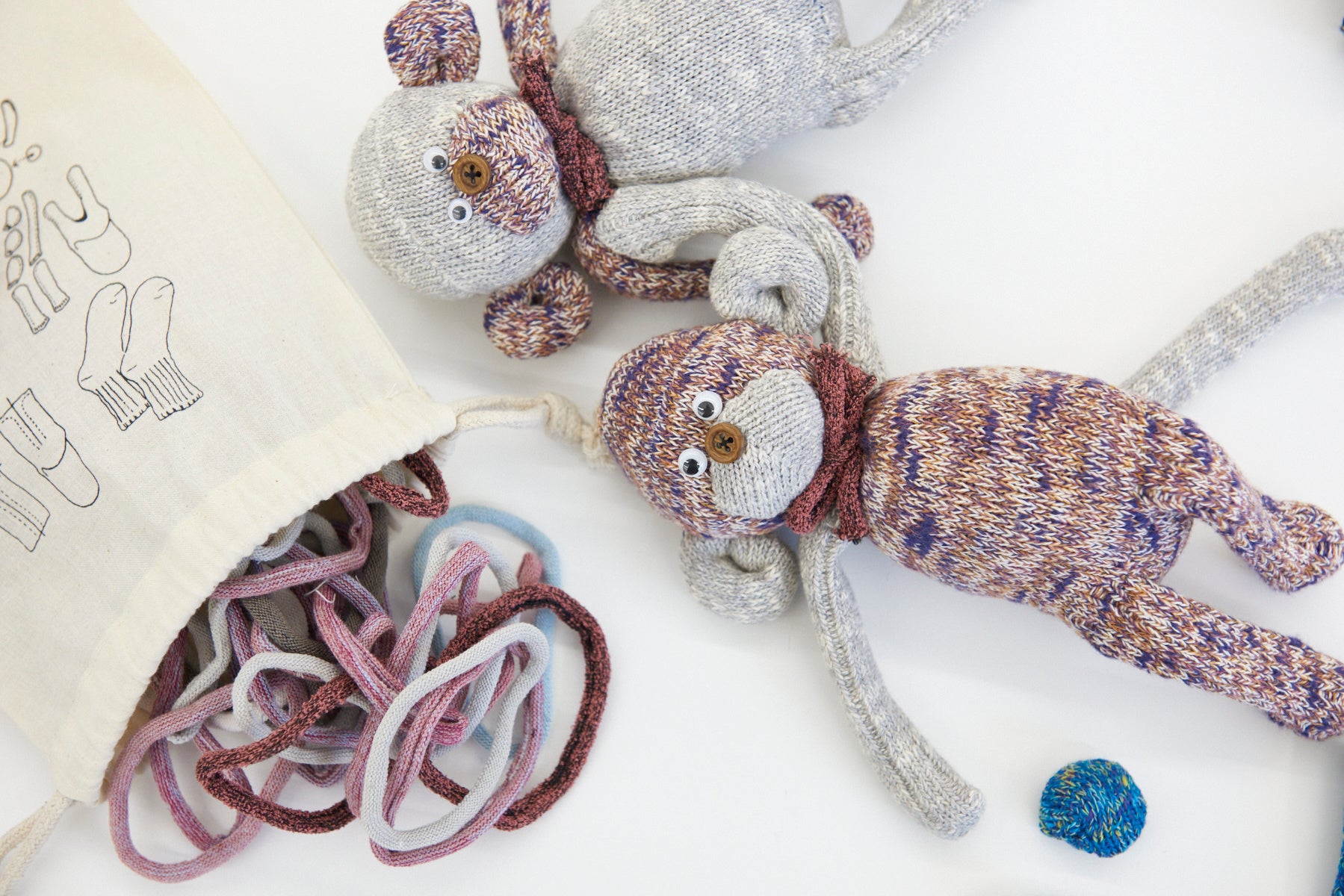 残糸で編んだ靴下や製造過程で生じた端材を活用した「SOUKI MONKEY制作」や、ローゲージソックスを使った修繕方法を学べる「ダーニング」のワークショップを実施しています。廃棄される素材を再利用するアップサイクルを意識した体験をご用意しており、靴下を通してものづくりの魅力やサステナブルについて学べます。