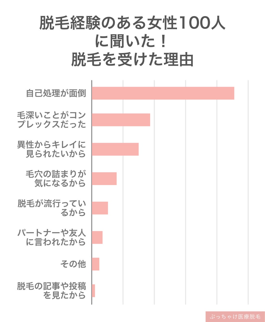 「肌が露出しやすい夏場に毎日剃るのは面倒だし、毛深くなるのが嫌だったから」「まわりの友人もやっていて私も手間なく綺麗な肌になりたかったから」
