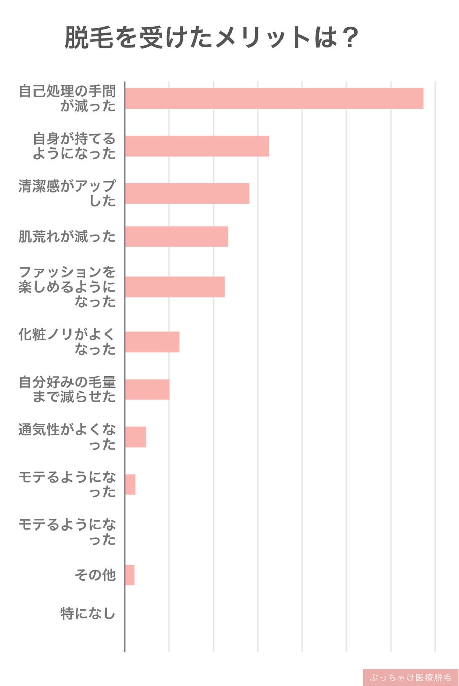 他にも「自信が持てるようになった」「清潔感がアップした」というメリットが挙げられ、「水着など夏場の露出も躊躇わずに気にせず、自分の着たい洋服が着れるようになった。」という声もありました。