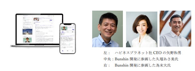 ● 第1弾として、メンタル強化に造詣の深い久瑠あさ美氏、成長論を展開するアスリートの為末大氏、ウェルビーイング社会をデータで追求する弊社代表の矢野和男のBunshinをリリース。