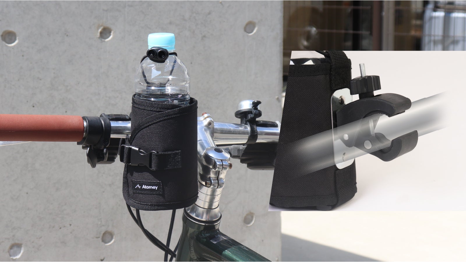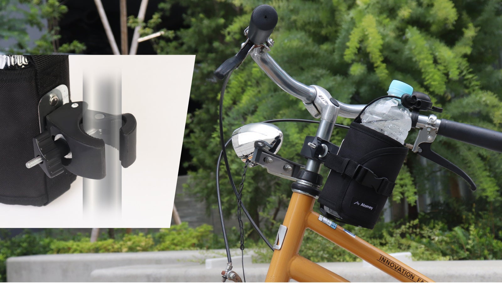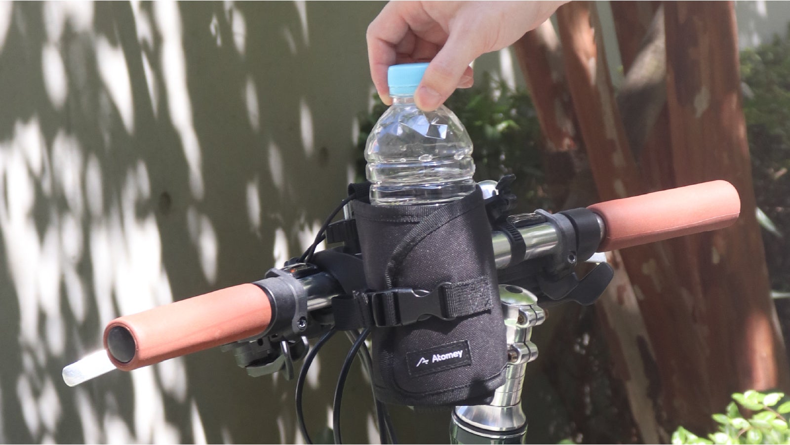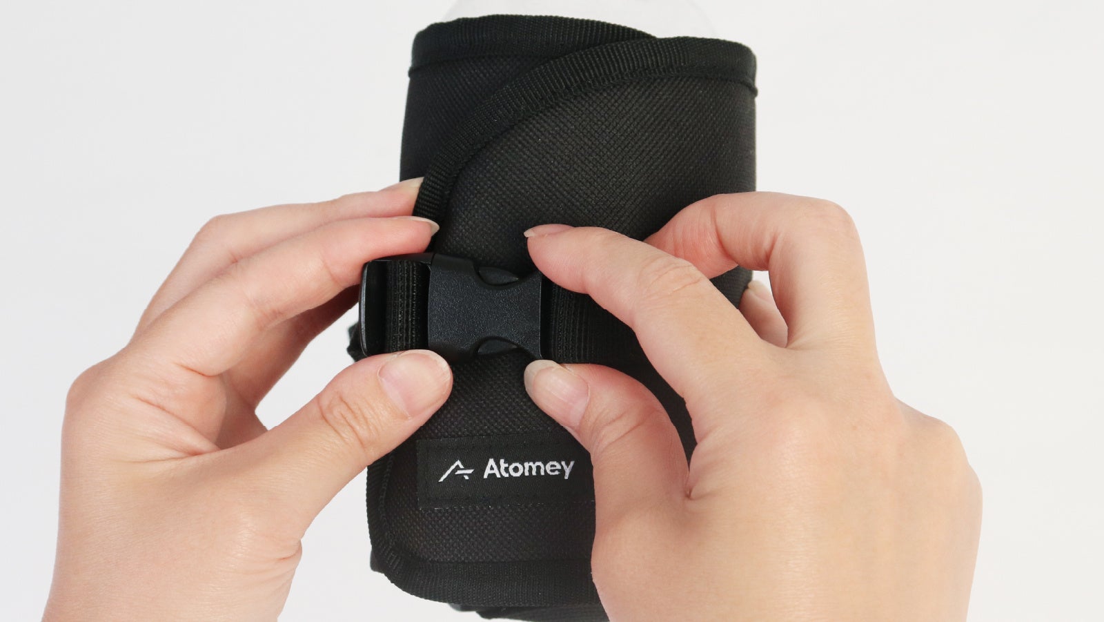 Atomeyボトルホルダーは、ボトルサイズに合わせて直径を調整できる便利アイテム。