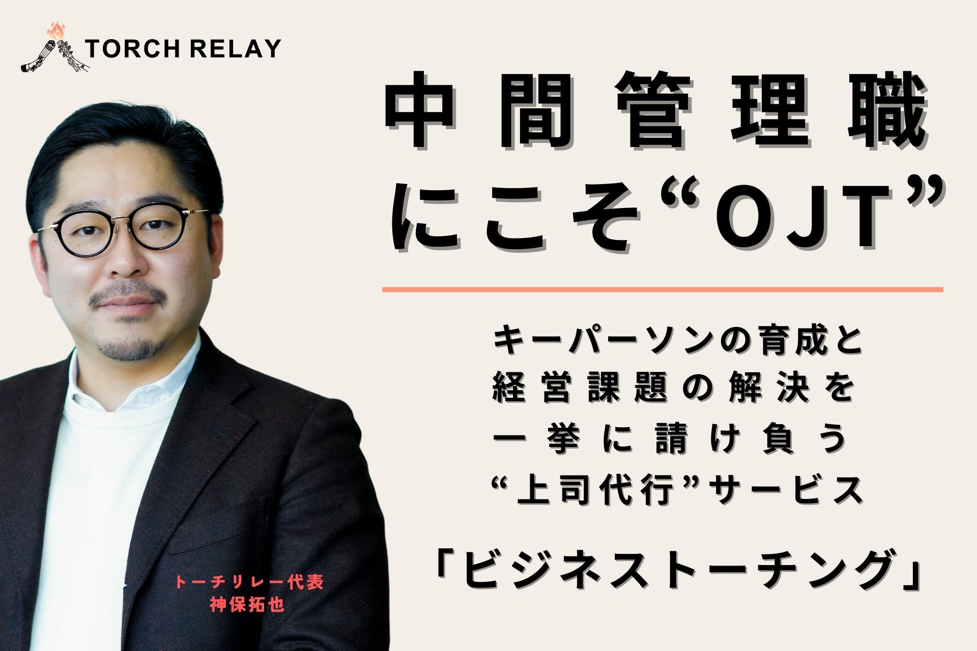株式会社トーチリレー(本社:東京都港区、代表取締役:神保拓也) は、OJT形式で中間管理職の育成と経営課題の解決を同時に実現する、上司代行サービス「ビジネストーチング」を正式リリースいたしました。