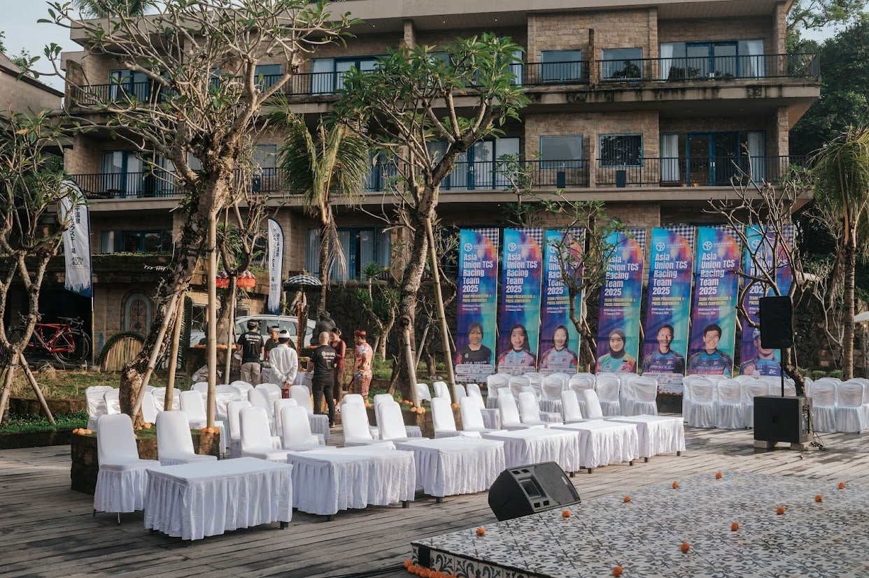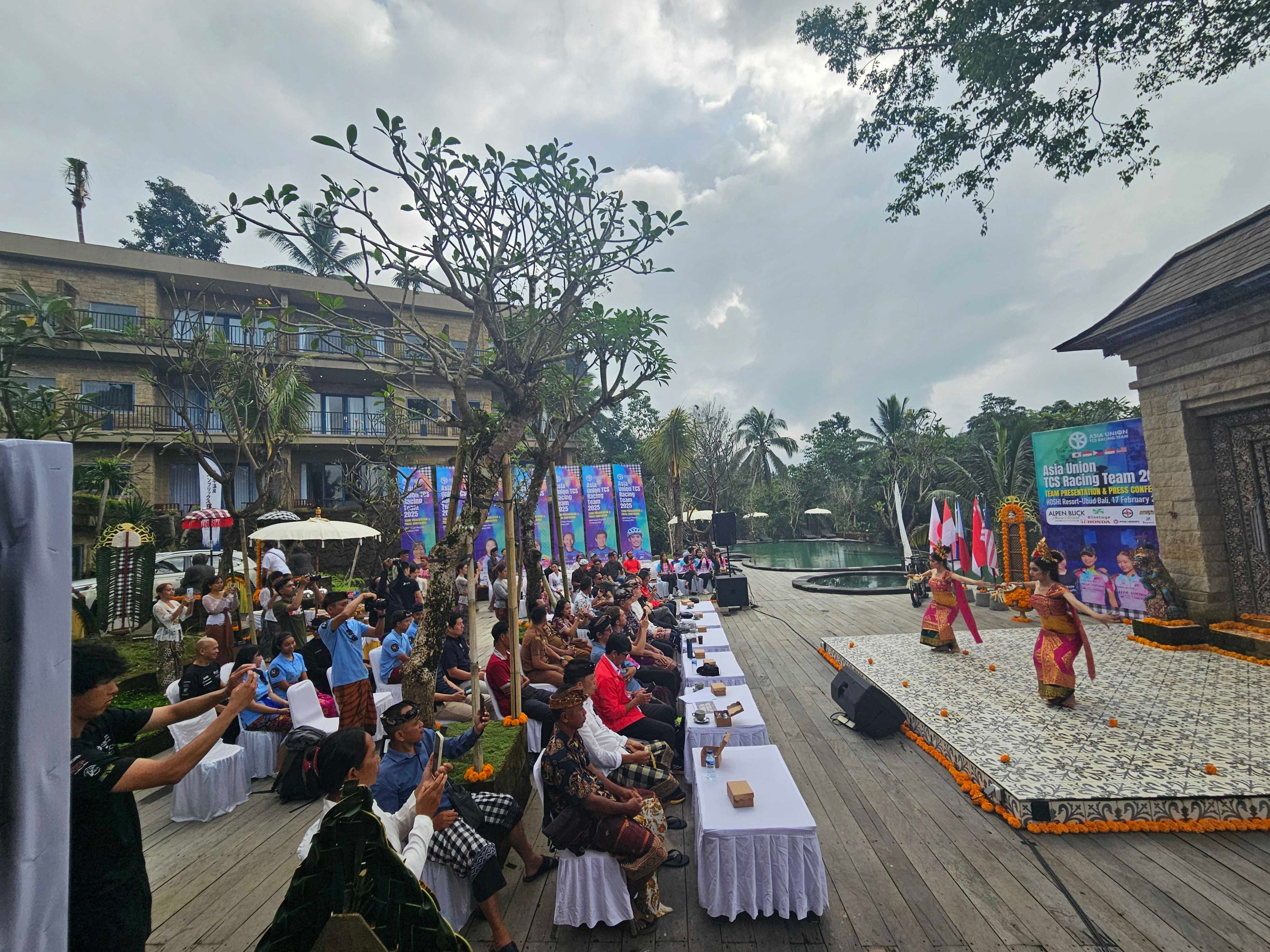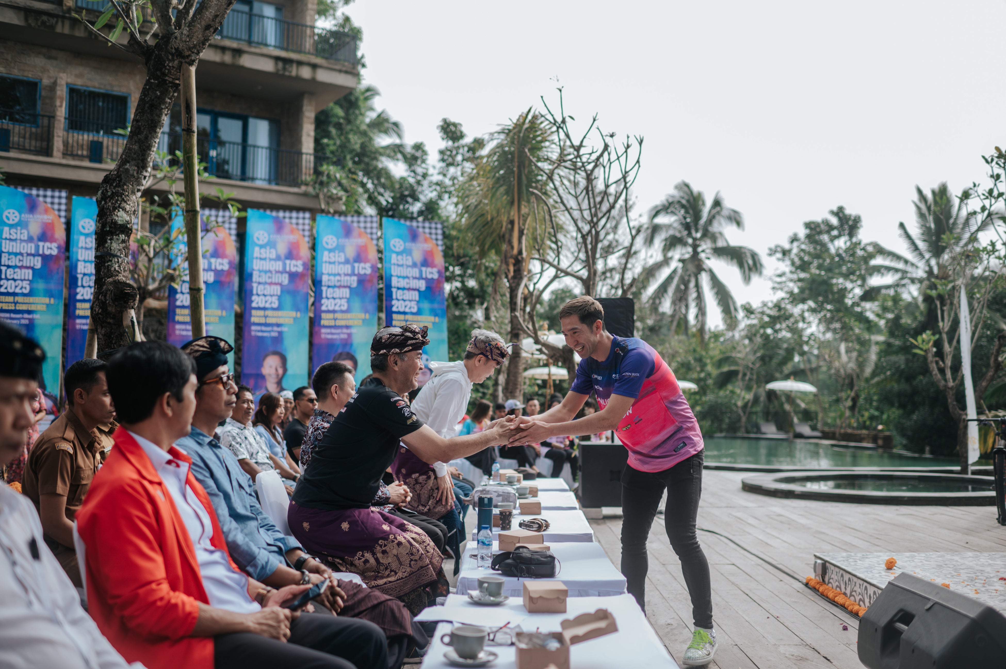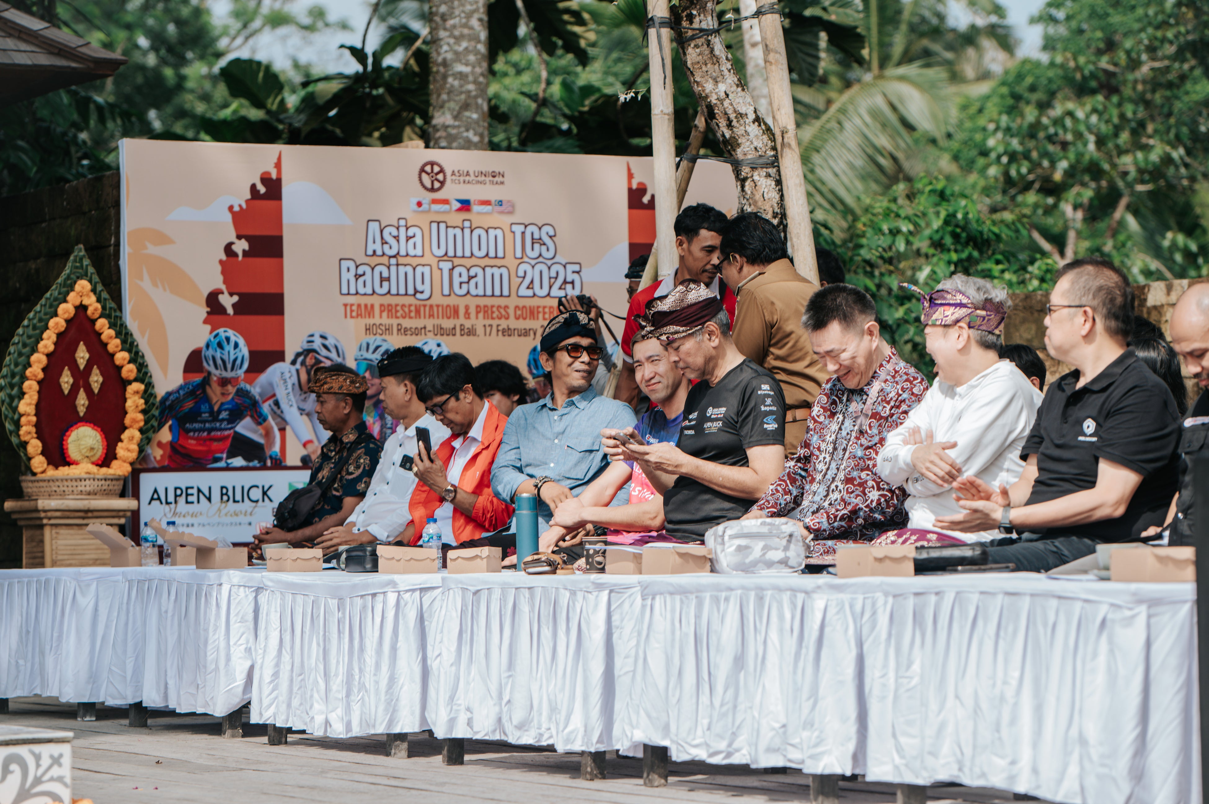 チーム発表会では、バリ自転車連盟会長のニョマン・ディアナ氏、バリスポーツ委員会副会長のマリオト氏、在デンパサール日本国総領事館の田中氏、Asia Union TCS Racing Teamの各スポンサーの代表者などが出席しました。