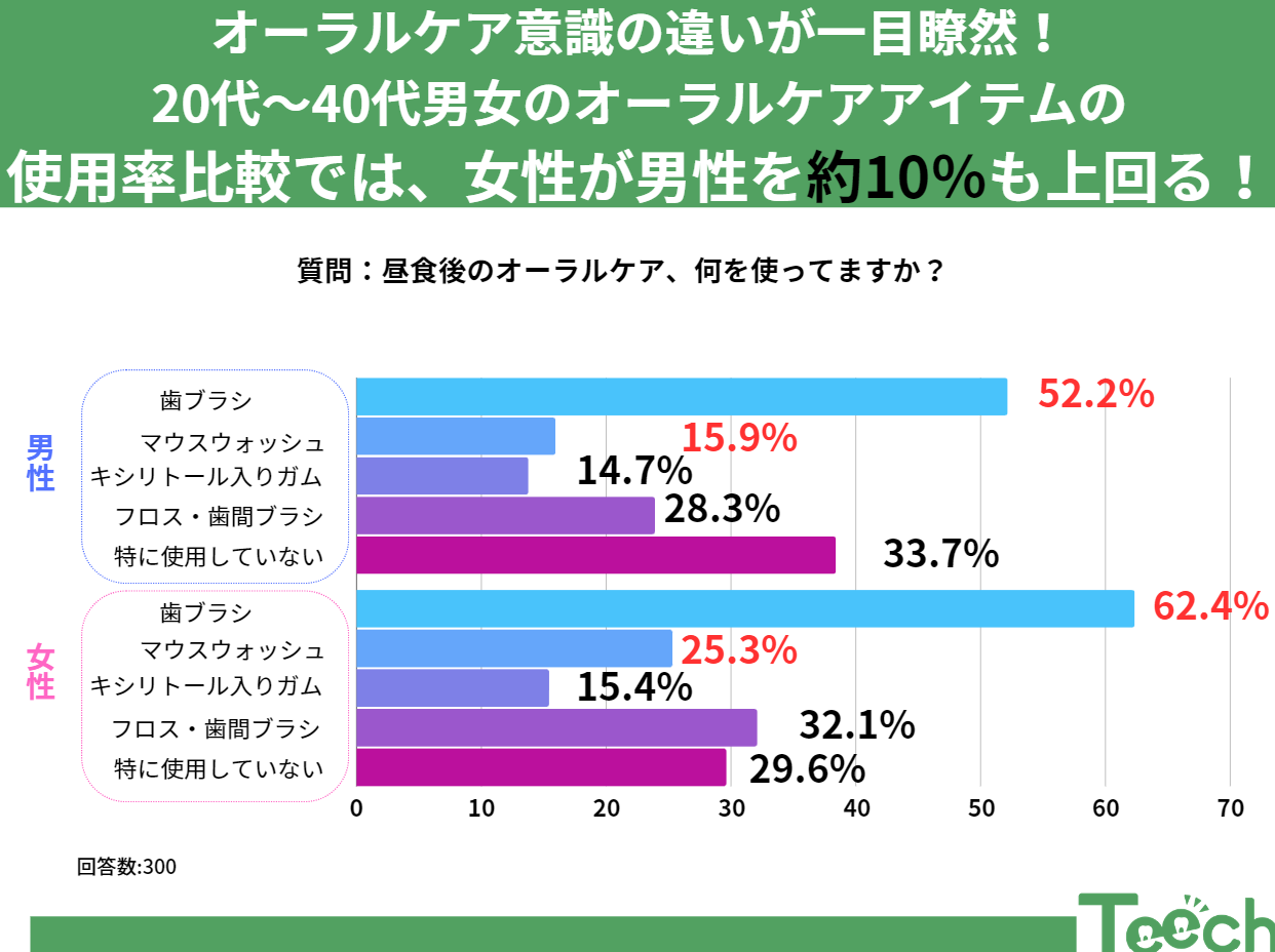 昼食後のオーラルケア、何を使ってますか?20~40代男女へアンケート