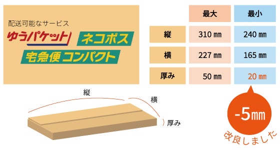 【開発情報】MELT-Lineでゆうパケット厚み2cmが対応可能になりました!MELT-Line梱包対応サイズが厚み最小25mm→20mmに改良