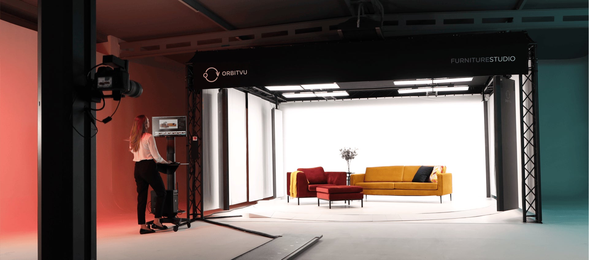 E-comm Studio+は、家具などの持ち運びが難しい大型の商品撮影に必要な照明などの設備が最初から備わっており、設置するだけで、家具などが撮影できる撮影レーンが完成します。撮影はすべてソフトウェア内で行うため、専門的な知識がなくても撮影可能で照明やカメラをはじめ、あらゆる機能を一元管理できます。