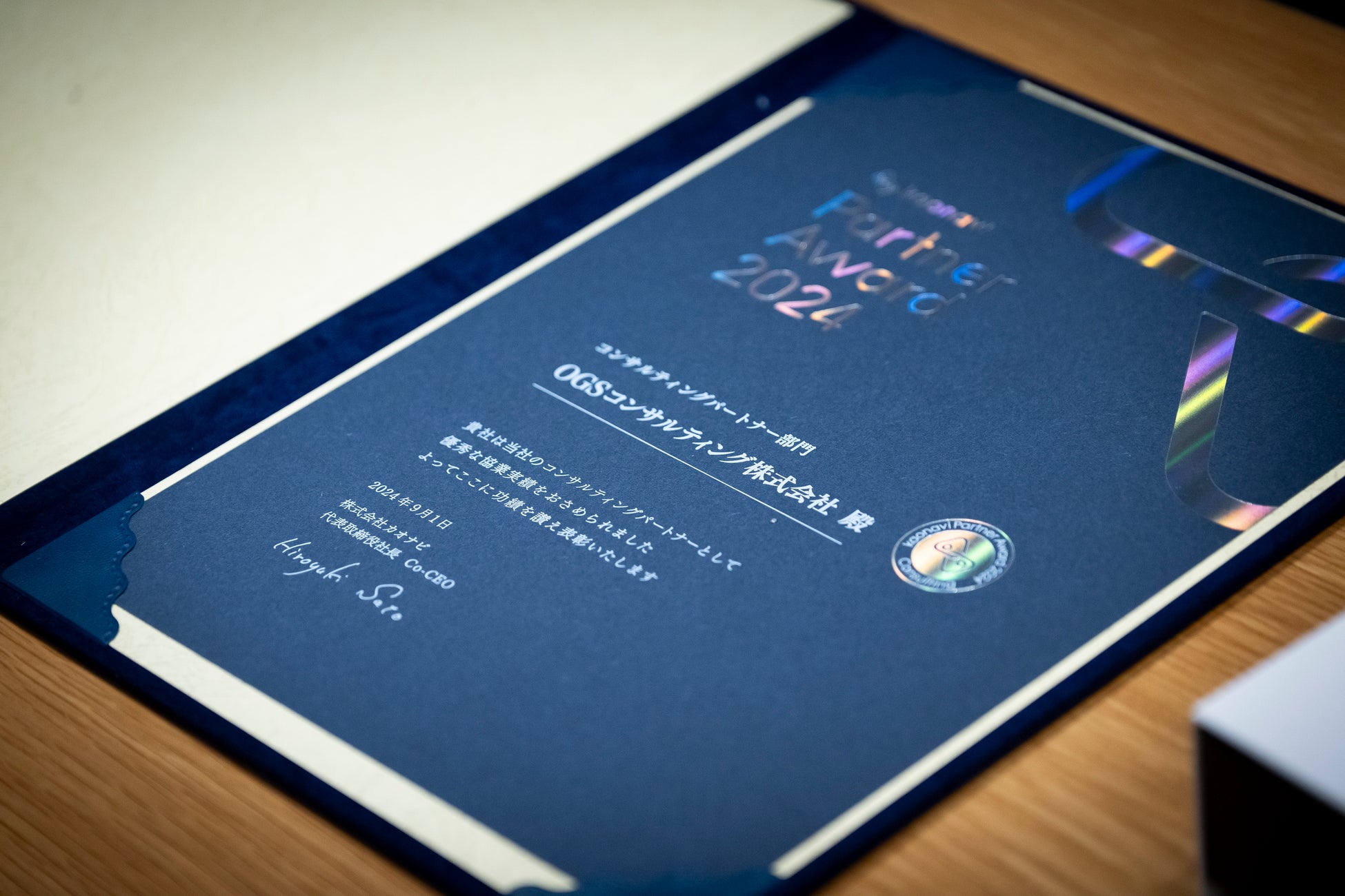 組織を活性化させることで、本質的な事業成長を支援するOGSコンサルティング株式会社(本社:大阪府大阪市中央区、代表取締役社長:深石 圭、以下、「OGSコンサルティング」)は、パートナーシップ提携をしている、株式会社カオナビ(本社:東京都渋谷区、代表取締役社長 Co-CEO:佐藤 寛之、以下「カオナビ」)が主催する「カオナビ パートナー アワード2024」において、コンサルパートナー部門と個人部門を受賞したことをお知らせいたします。