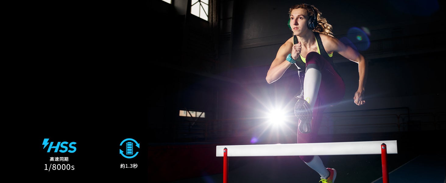 1回の充電で最大500回のフルパワー・フラッシュが可能な充電式リチウムイオンポリマー・バッテリー