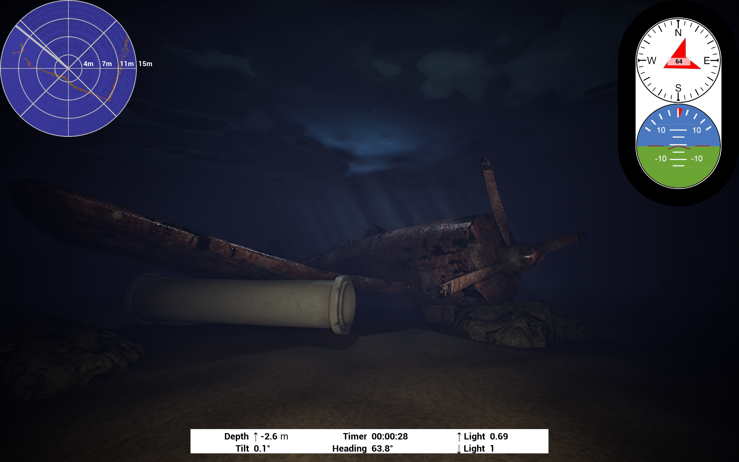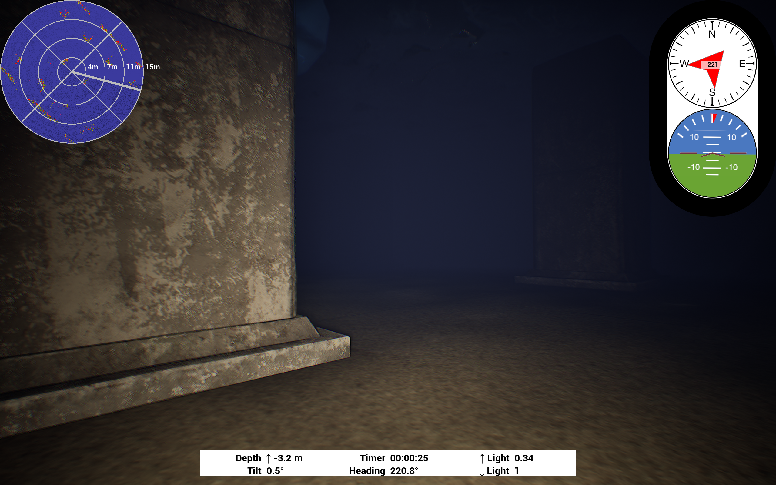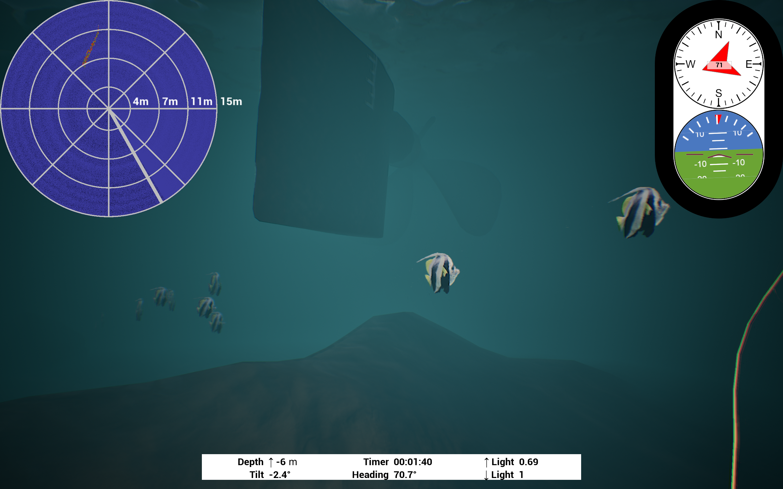 FF Virtualは当初、自社スタッフを教育するツールとして開発をスタートさせました。2年近くの開発期間を経て、テザーケーブルは物理演算処理を用いて抵抗や張力までも正確に再現し、フィールドは実際に調査した現場を模して構築しました。さらにソナー画面の描画遅延や死角などの特徴、着底時の巻き上げなど実際に水中ドローンを普段から運用している我々ならではの知見を惜しみなく投入しました。