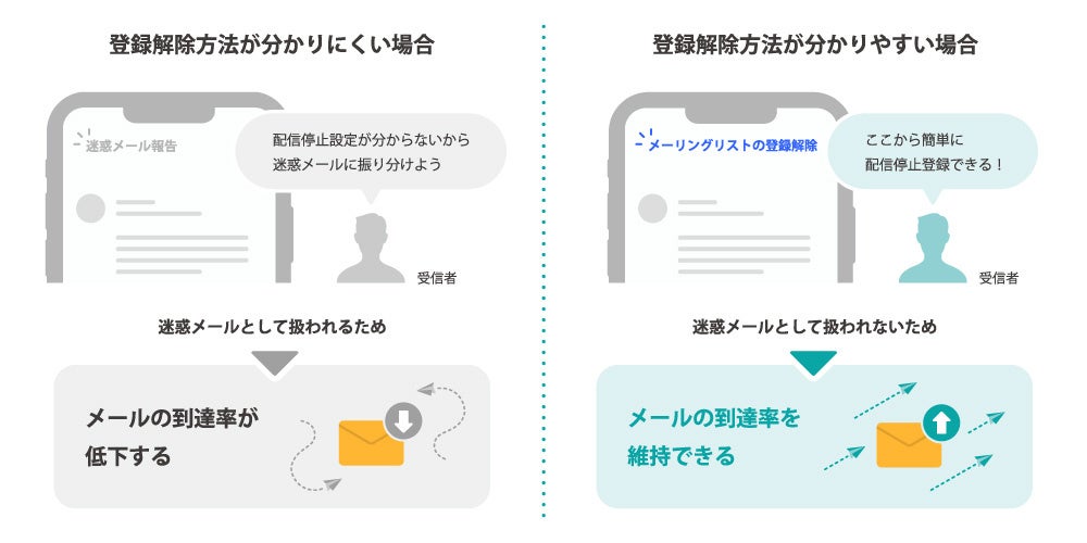 ※メール送信者は、「ワンクリック登録解除機能」を利用した場合でも、メール本文に配信停止リンクなどを設定する必要があります。