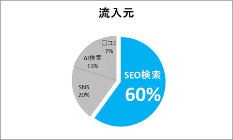 意外な点としてはAI検索が13%ほどあることです。「チャッピー(ChatGPT)に聞いておすすめされました!」など、今流行りのAIからの流入が今後増加することが見込まれます。