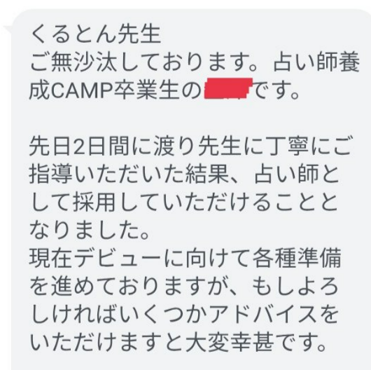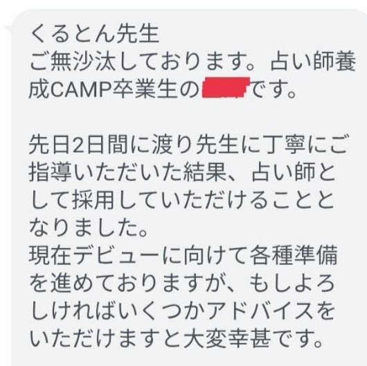 占い師養成CAMP代表講師・くるとん先生 コメント
