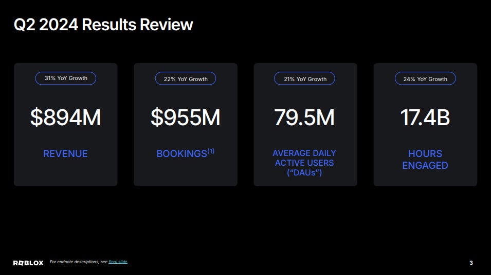 最新のデータでは、日間アクティブユーザー数が7950万人(前年同期比で21%成長)、ユーザーの総エンゲージメント時間が174億時間(同24%成長)という非常に巨大なサービスに成長しています。女性ユーザーが約4割を占め、12歳以下が4割以上集まっていることが特徴的です。