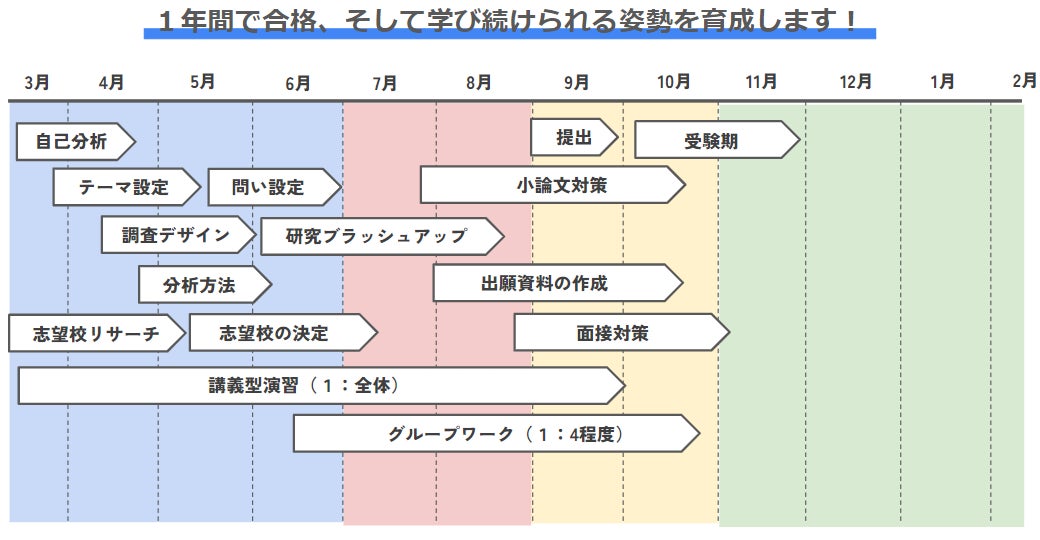 スケジュール:1年間で合格、そして学び続けられる姿勢を育成