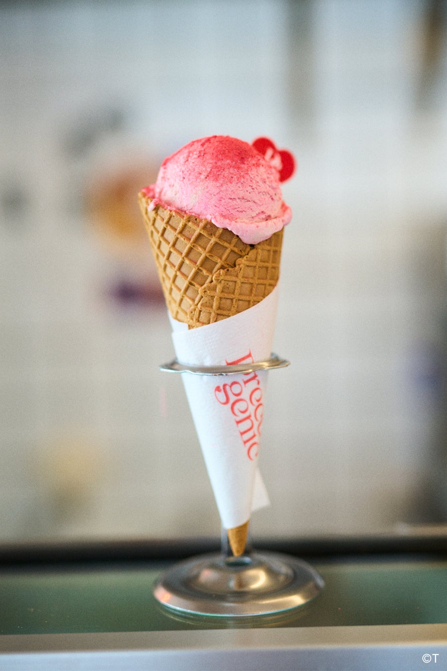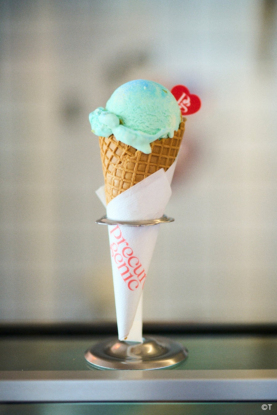穏やかで柔らかな「ミップル」の性格に合わせて、バニラのやさしい甘味のアイスクリームにストロベリーとブルーベリーの果実味のある酸味を織り混ぜたアイスクリームに仕上げています。(税込660円)