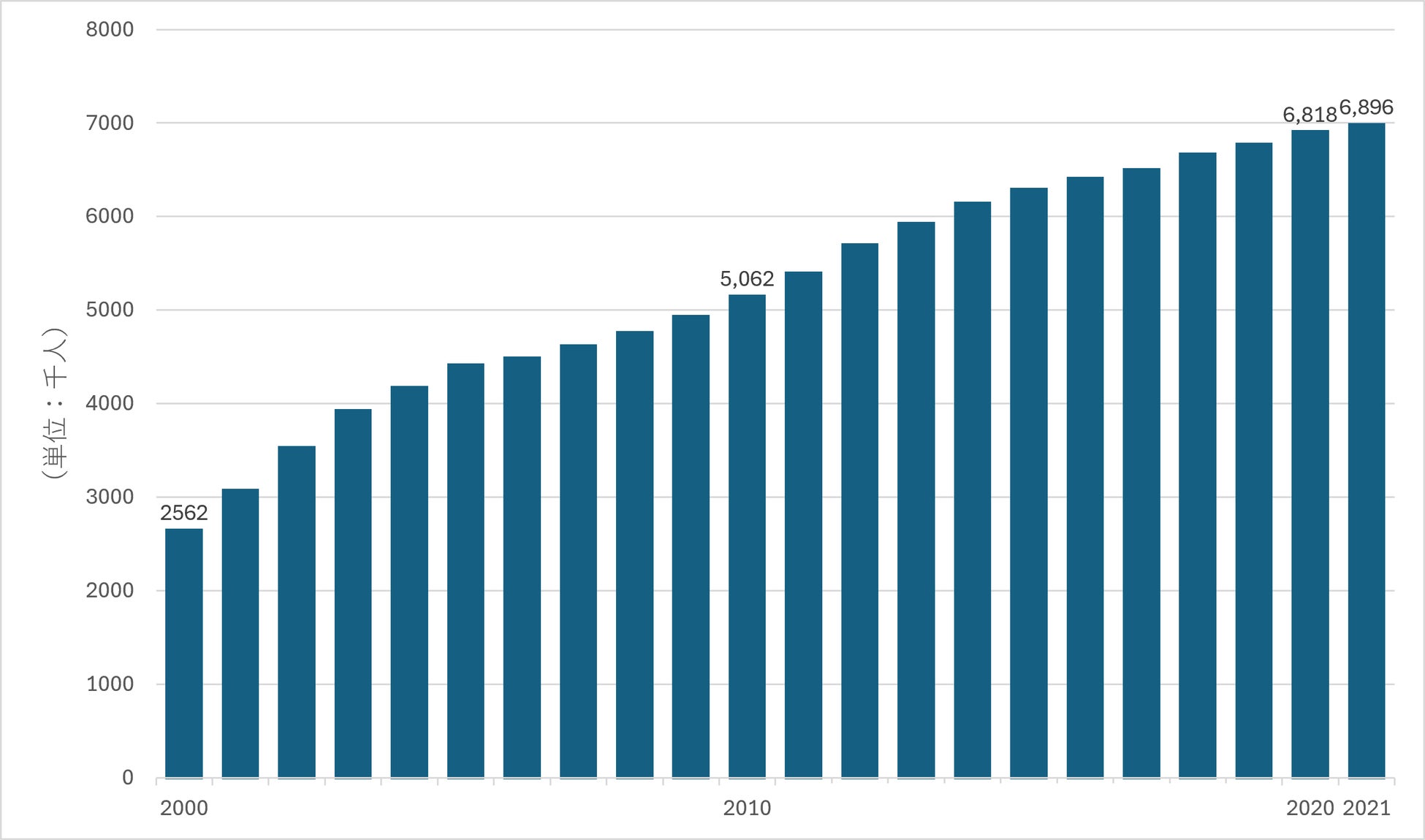 労働人口の減少や共働き世帯の増加、介護家族を支える雇用者の増加(図1、図2参照)を背景に、従業員が柔軟に働き方を選択できることがますます重要になっています。当社では、育児・介護休業制度を充実させ、従業員が出産・育児・介護といったライフイベント時にも雇用関係を維持できるよう努めています。