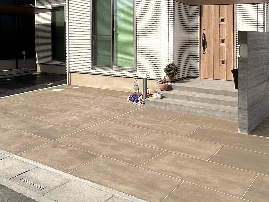 外構の床仕上げとして、本物のタイルは高い完成度を持つ一方で、