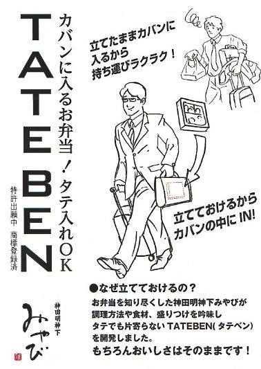 まま持ち運べる、その名も【TATEBEN】。お弁当の製造販売に、長年にわたり携わって来た、弊社ならではのノウハウが詰まった新商品です!