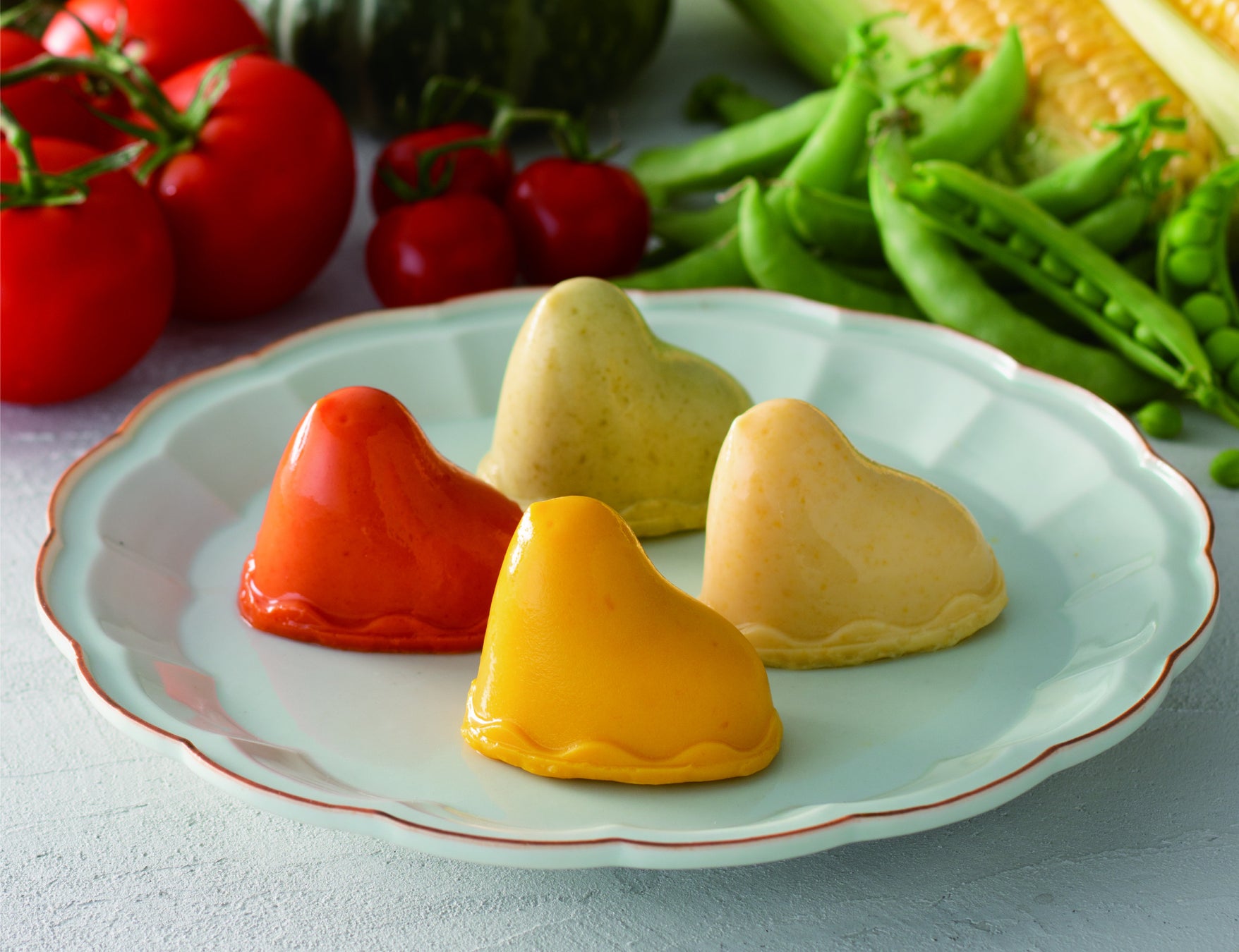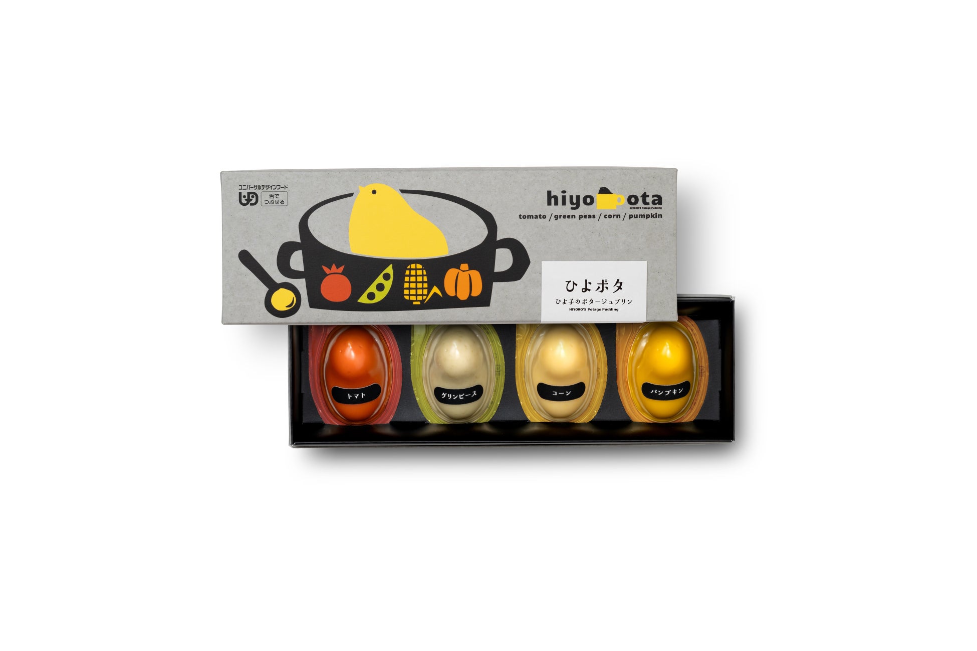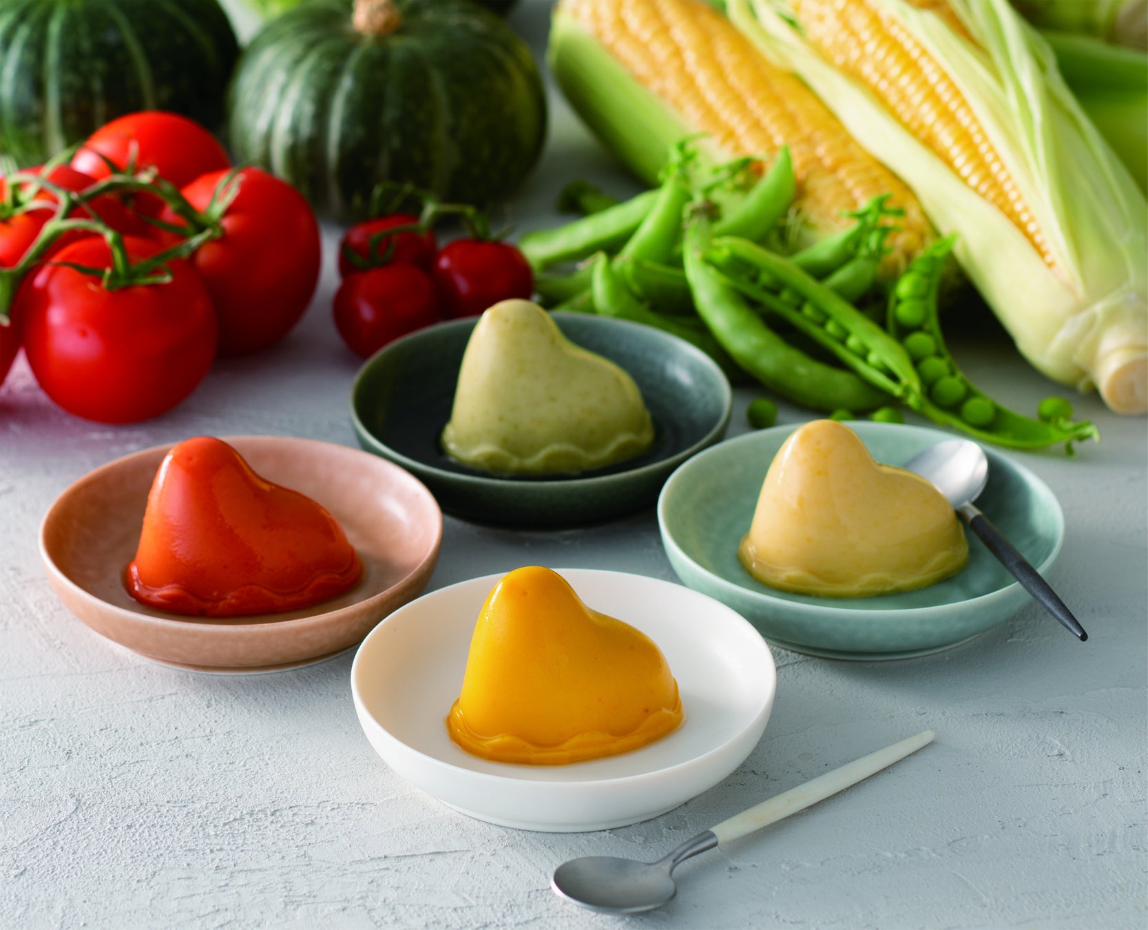 この度、新しいステップとしてユニバーサルデザインフードの規格に適合した安心・安全な食品、 野菜のポタージュプリン「ひよポタ」を誕生させました。