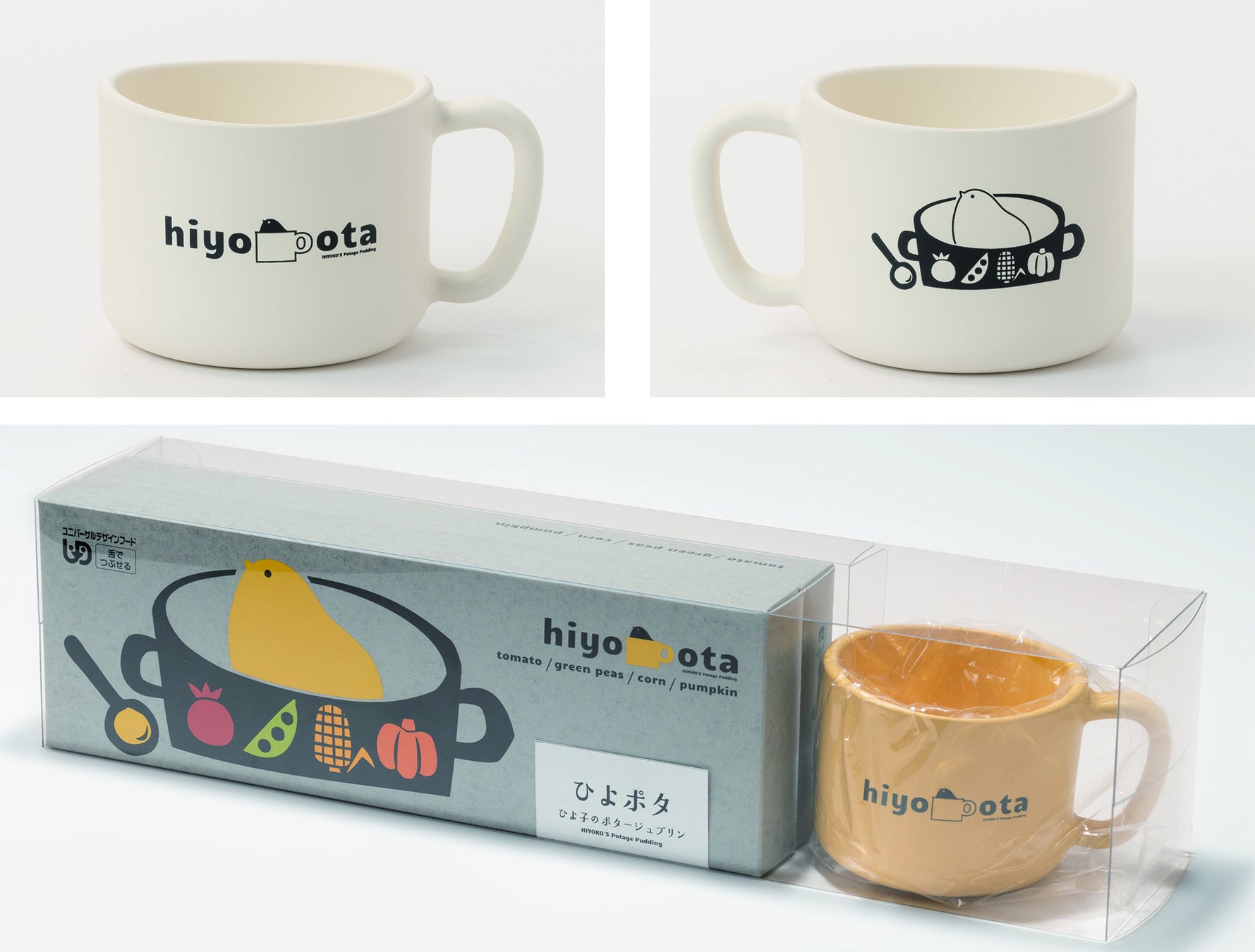 ひよ子のポタージュプリン4個入とオリジナルマグカップのセットを数量限定販売いたします。 かわいいマグカップは電子レンジ・食器洗い機対応で実用的です。マグカップは黄色と白色の2種類をお選びいただけます。