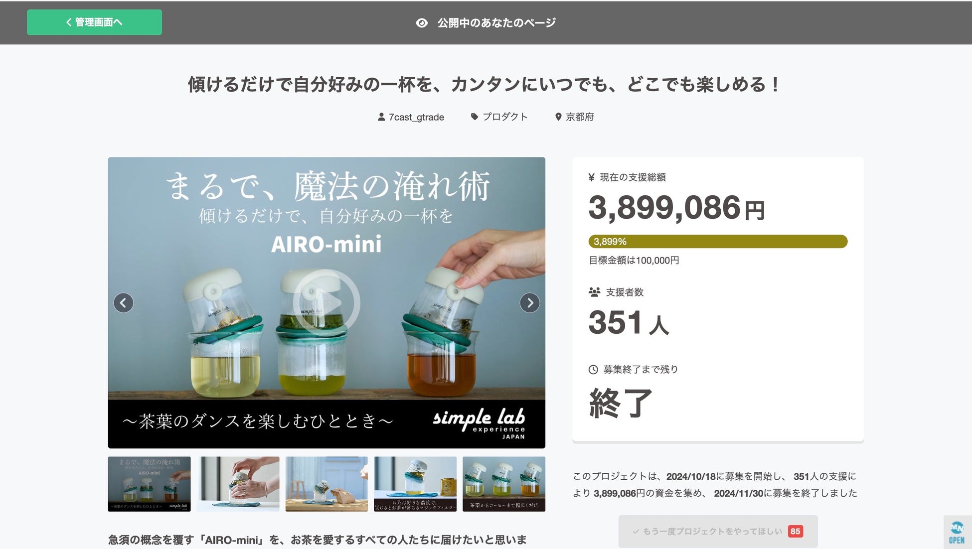 この魔法の急須「AIRO-mini」で無農薬の茶葉から簡単に美味しいお茶を淹れて