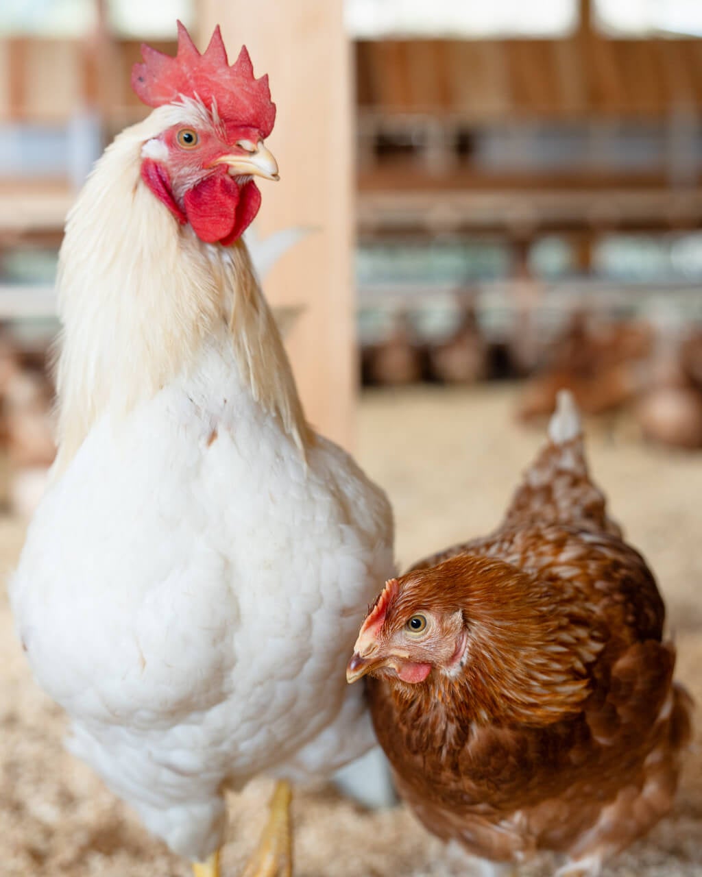 生産するたまごは有精卵です。たまごを産まない雄も飼育することで自然交配がおこるためです。雄は卵を産まないのに餌は食べるので雌のみを飼育するよりもコストがかかります。それでも雄を一緒に飼育する理由は、鶏本来の生態に寄り添いたいからです。