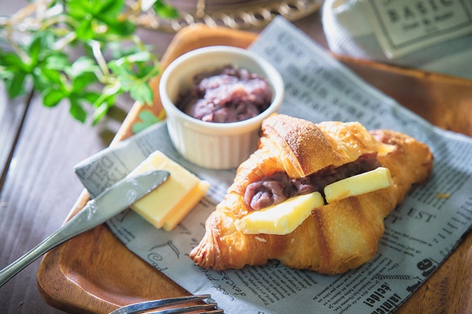北海道産の小豆を使用し、小田原の老舗製餡所が作った特製のあんこをたっぷり使ったクロワッサン。 あんこの品の良い甘さはバターとの相性ピッタリ。