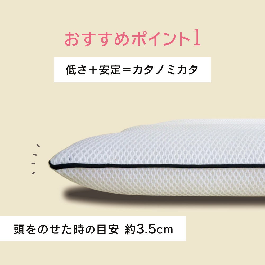 低い枕で販売中の「カタノミカタ」は、寝姿勢を重視したまくらと同時に、通気性にも特化した構造のまくらで、夏にも最適にお使いになれます。そこに、さらにより快適なアイテム「今治タオルまくらカバー」をあわせて、ご購入していただいたお客様に期間限定で、1,000円OFFでご提供いたします。