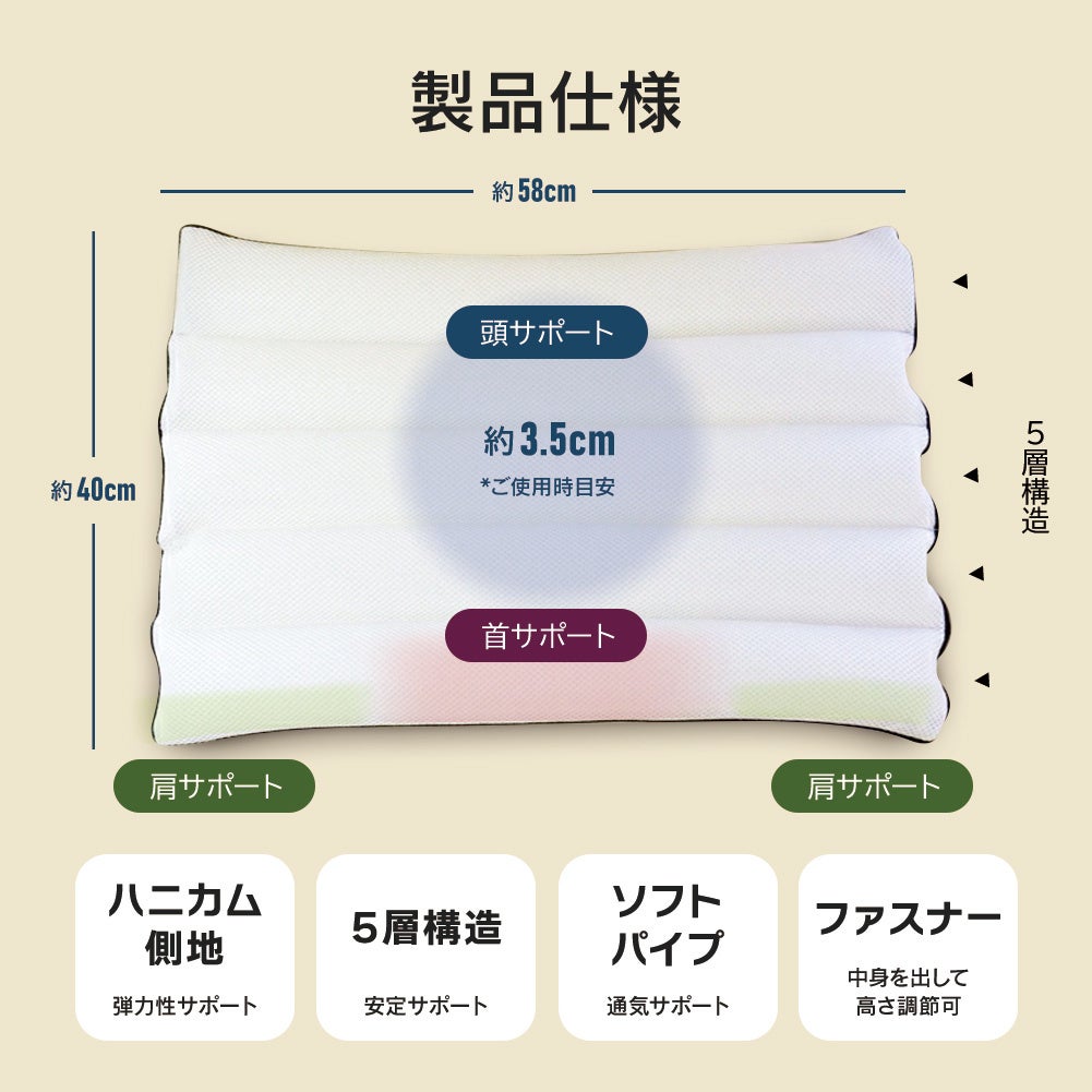 ■サイズ 約40×58×高さ5.5cm(頭をのせた時の目安は約3.5cm)