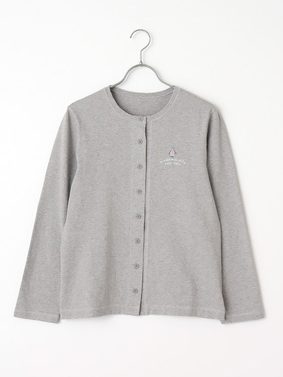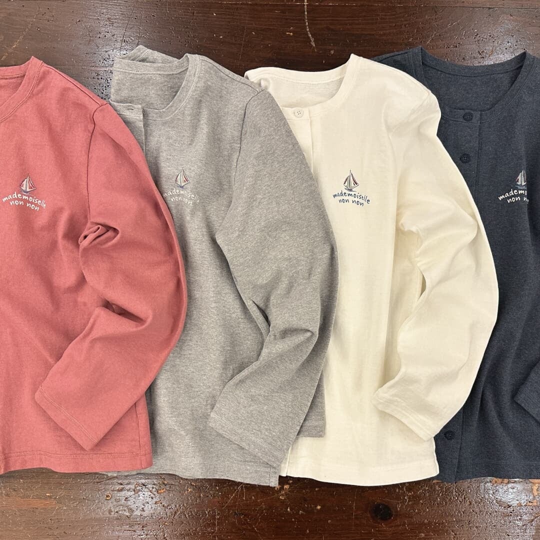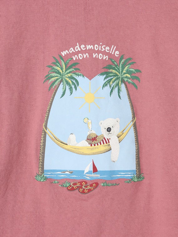 マドモアゼルノンノンからはバカンスを楽しむシロクマをプリントしたカーディガン。吊り編み機でゆっくりと時間をかけて編み上げられた天竺生地を使った薄手の柔らかなカーディガンは、春夏の羽織りとして活躍してくれる一着。