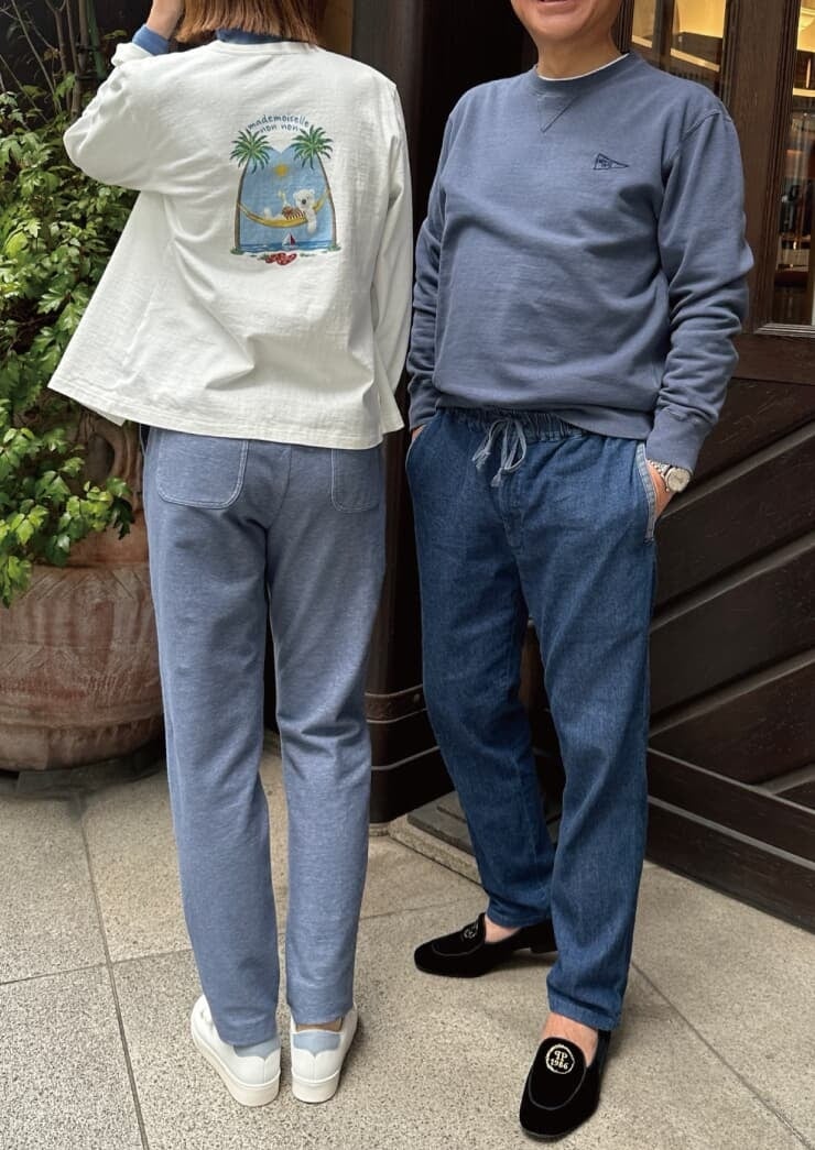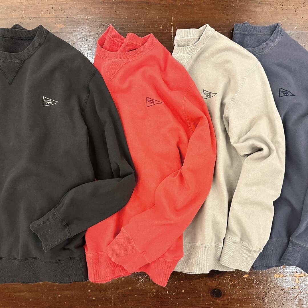 パパスからはブランドアイコンであるサイを刺繡とプリントであしらったスウェット。薄手のラフィ裏毛(超長綿の落ち綿)生地を使い、着心地良く仕立てている。