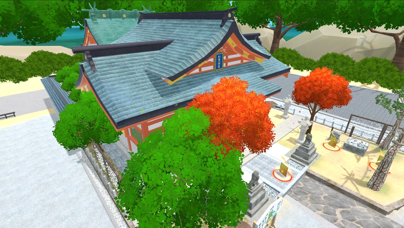 新たにパワーアップされたワールドでは、現実の写真を背景に自分のアバターで写真を撮ることができるバーチャルフォトスポットが実装され、さまざまなSNSにアップできるようになりました。ユーザーは紅葉八幡宮の美しい景観をデジタル空間で楽しみながら思い出を残すことができます。また、ワールド内から直接紅葉八幡宮のホームページにアクセスすることも可能となり、現実の神社参拝の魅力をメタバース上でも楽しむことができるようになりました。