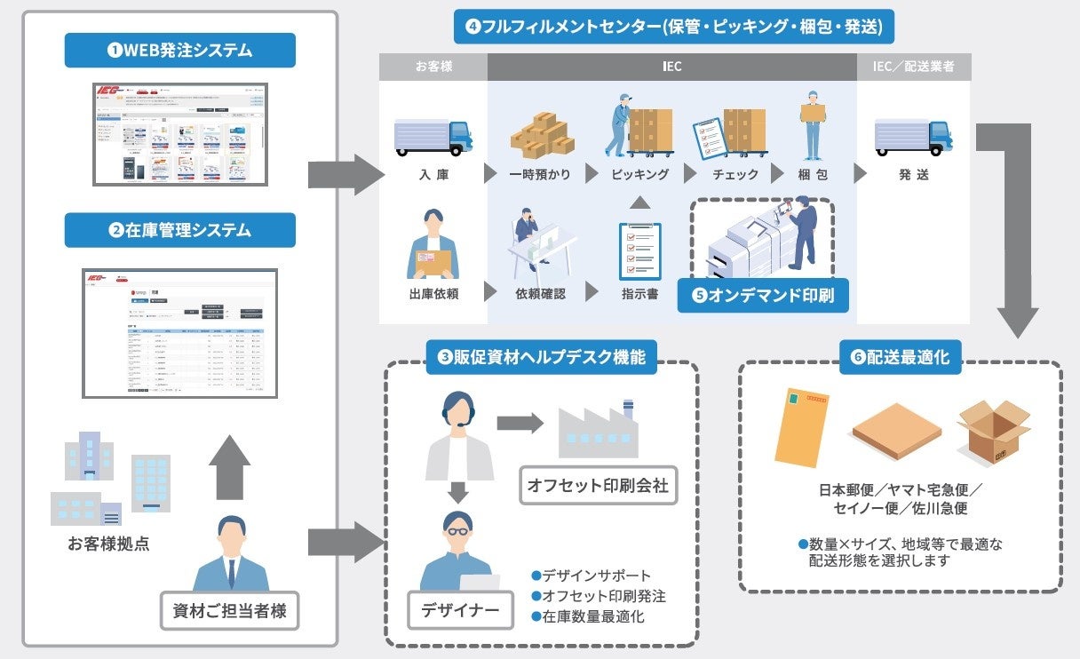 Web発注システムにより、注文受付からカタログ類の販促品印刷・出庫・配送までワンストップで提供できるサービスです