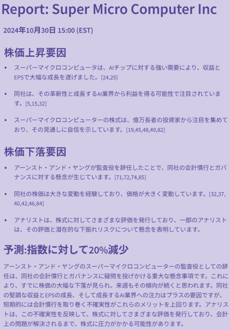 株式会社aiQ(本社:東京都千代田区、代表:山本 裕樹)は、生成AIがニュースやデータから自動でアナリストのようなレポートを生成するSaaS「Analystant」をリリースしました。本サービスを利用することで投資家は米国を中心に10,000以上の株式銘柄に対して365日24時間、最新の情報に基づく分析レポートを読むことが可能となります。