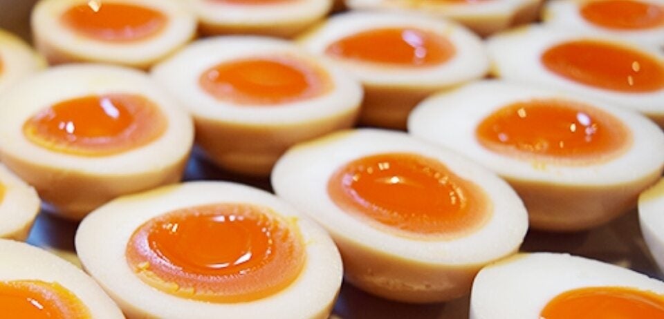 店舗で新鮮な生玉子からとろとろの半熟になるよう茹で上げ、特製のタレに長時間漬け込み、黄味のコクが濃いとろとろ食感の味玉にしています。