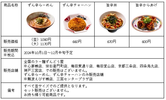 ラー麺ずんどう屋“秋の旨辛フェア”お客様の声にお応えし姫路総本店限定の『ずん辛らーめん』全店舗で期間限定復刻他旨辛の新商品3品も同時販売