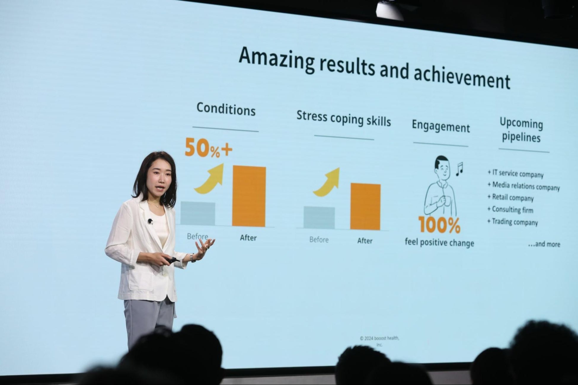 このたび予防と生産性向上に重点を置いたメンタルヘルス対策を目指す伴走型社員ケアBOOOST を提供するbooost health株式会社(東京都中央区、代表取締役CEO・創業者:芳賀彩花)は2024年6月6日にGoogle for Startups Demo Day Asia 2024に登壇しました。本イベントは日本、韓国、インドの女性起業家・スタートアップ12 社によるピッチコンテストです。booost health株式会社は2024年にGoogle for Startupsによるアジア太平洋地域の女性創業者支援プログラムFounders Academy APAC programの参加スタートアップに選出されており、今回のGoogle for Startups Demo Day Asia 2024への登壇が実現しました。