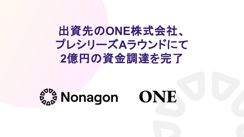 Nonagon Capital出資先のONE株式会社、プレシリーズAラウンドにて2億円の資金調達を完了