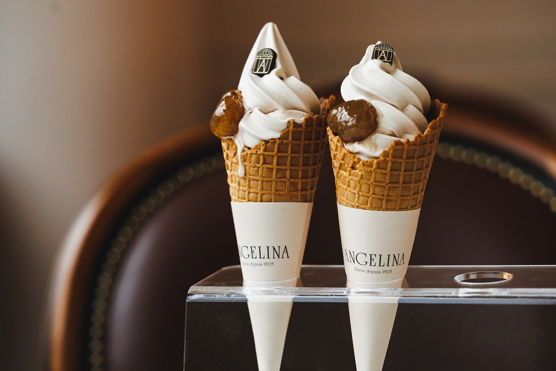 「アンジェリーナ」のアイコン的モンブランをイメージした「モンブラン ソフトクリーム」は、フランス産マロンを贅沢に使用し、エレガントなコクとなめらかさを味わえる一品。仕上げには、アンジェリーナのエンブレムが描かれたショコラとフランス産マロンを使ったマロングラッセを丸ごと一粒トッピング。“原宿”という土地に合わせて開発した日本限定アイテムです。「モンブラン ソフトクリーム」片手に原宿・表参道の街をお楽しみください。