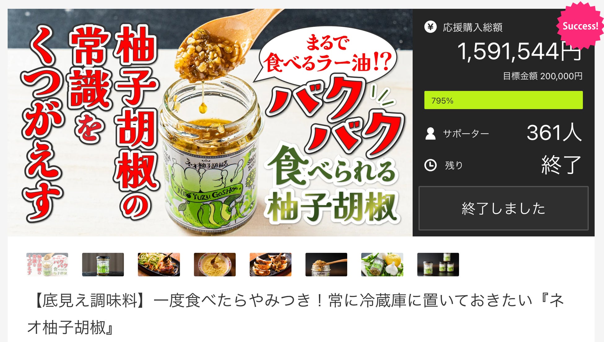 【目標金額795%達成】テレビや新聞で紹介された新感覚調味料『ネオ柚子胡椒』Makuake先行販売が終了!