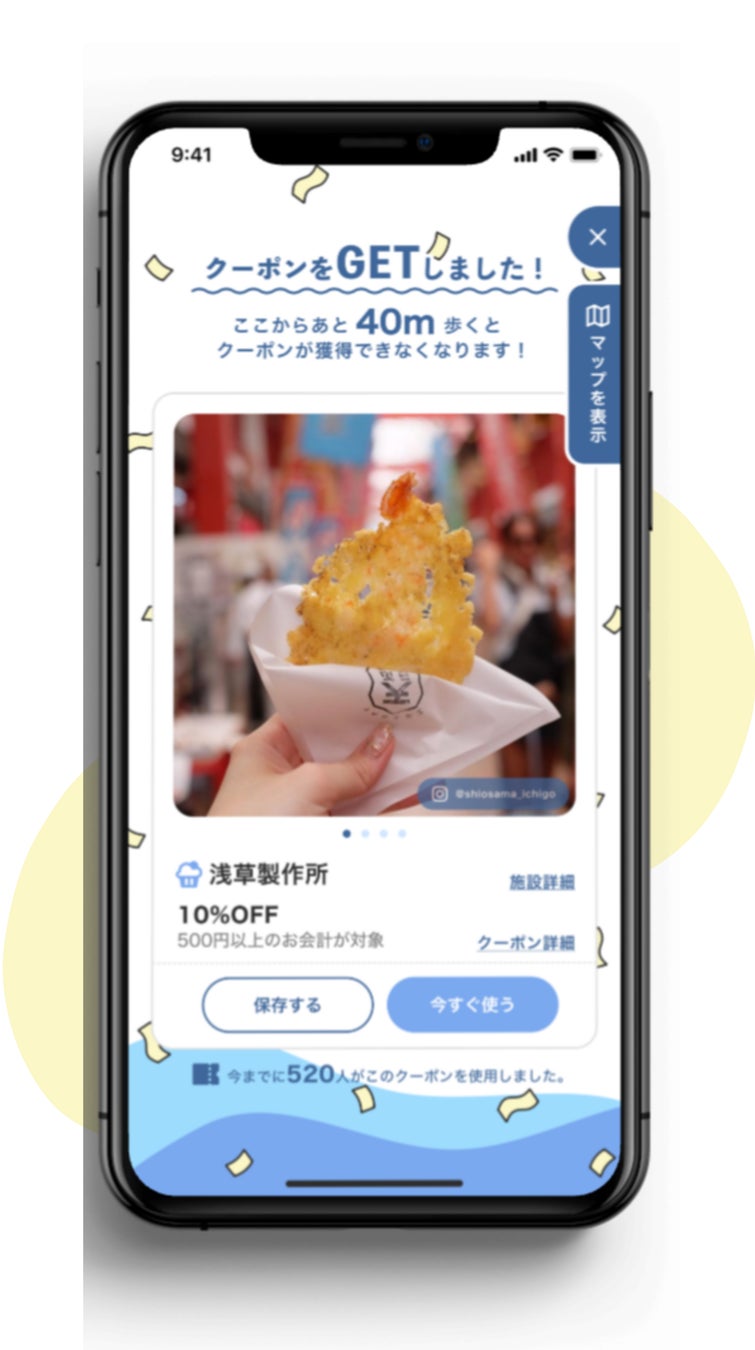 ・事前にクーポンをGETしなくても、お店に近づくだけでクーポンをGETできる!