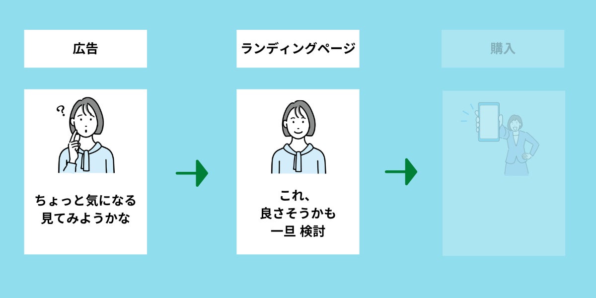 広告から、商品・サービスのランディングページに遷移する直接商品LPに飛んでもらうよりも、SNS広告投稿と商品LPの間に記事LPを挟むことで、より高い購買率を実現できます。